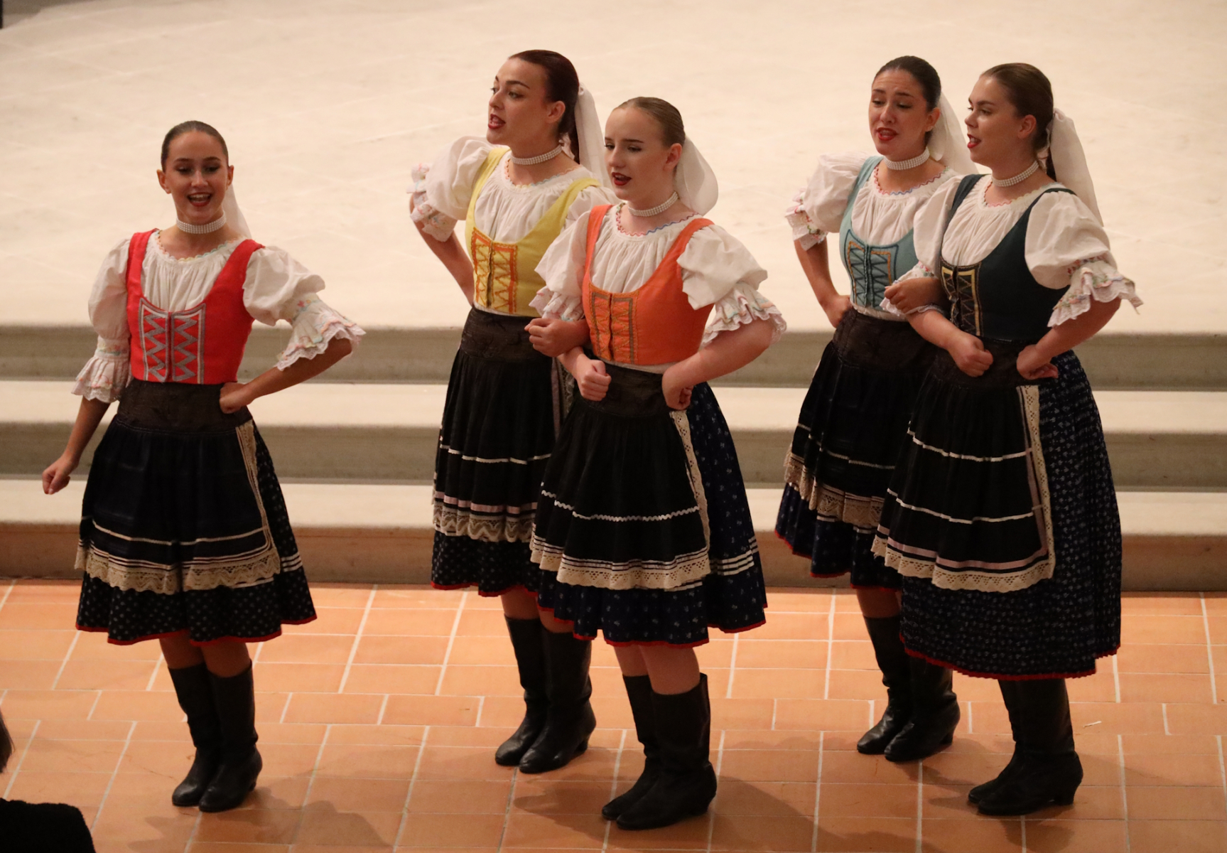 Enfin, les musiciens de l’orchestre slovaque, formé de violons, d’une clarinette, d’un accordéon, d’une contrebasse et d’un cymbalum, ont fait preuve de virtuosité et ont séduit les auditeurs. Ils ont aussi chanté, ils ont accompagné le groupe de cinq chanteuses à la voix puissante. Pour terminer, les danseuses et les danseurs sont revenus sur scène pour un final complet : musique, chant et danse.
