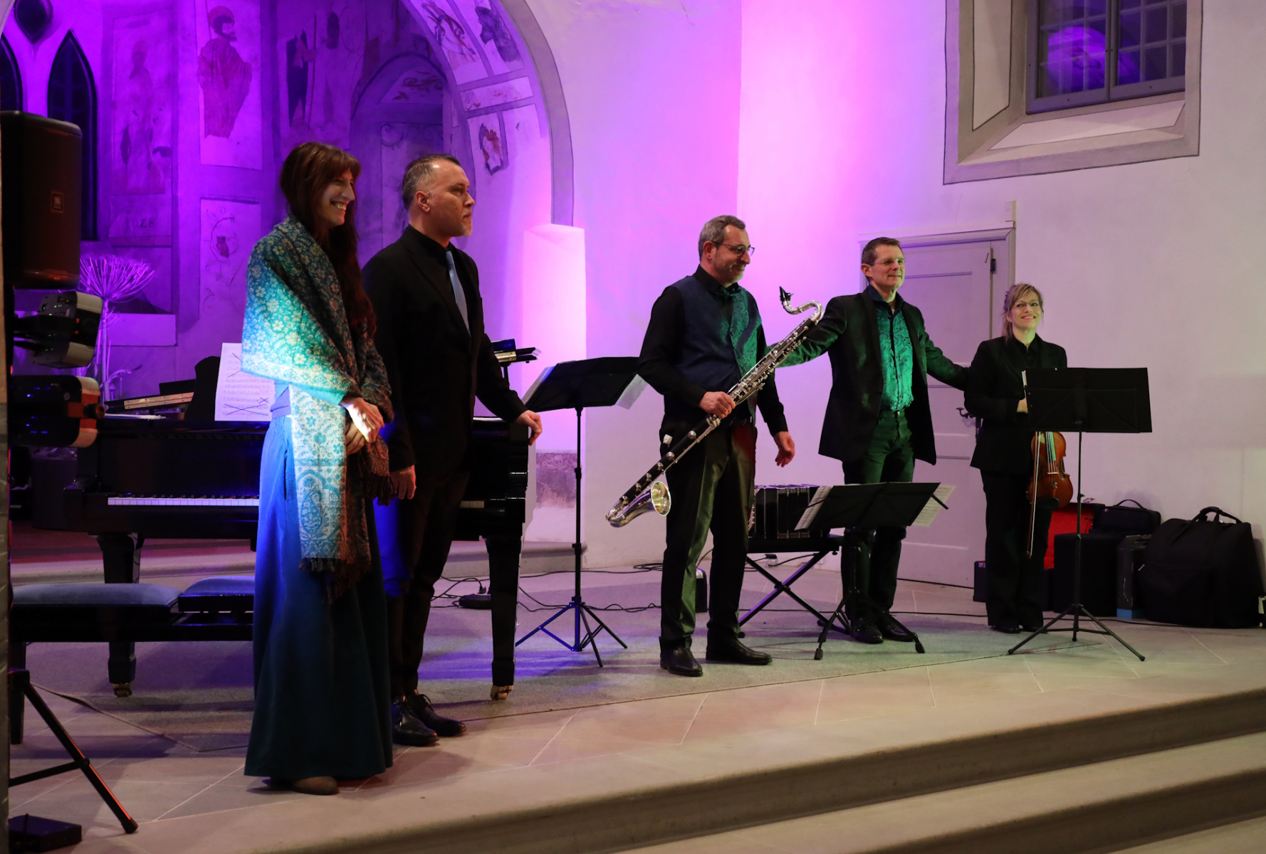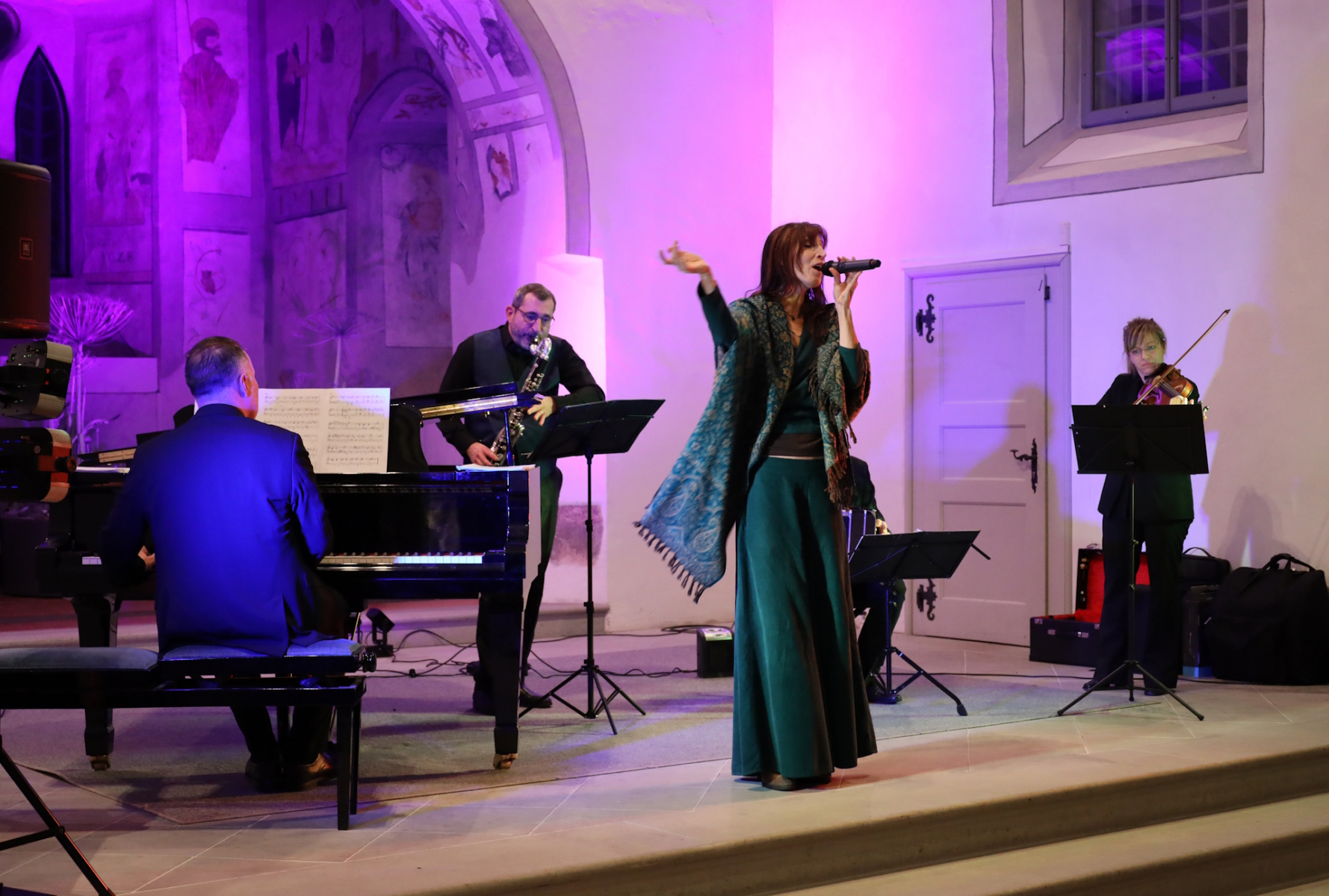Beim Konzert im Cantorama Jaun trat Dayana Pfammatter Gurten als Solistin, im Duett mit Maritta Lichtensteiger auf. Begleitet wurden sie von der Kontrabassistin Madlaina Küng und am Schwyzerörgeli von Marco Gurten. Die beiden Instrumentalisten sind eine Teil-Besetzung aus dem «Master Rezital» Alpuluft, welches Dayana Pfammatter für ihr Masterdiplom komponiert hat.
