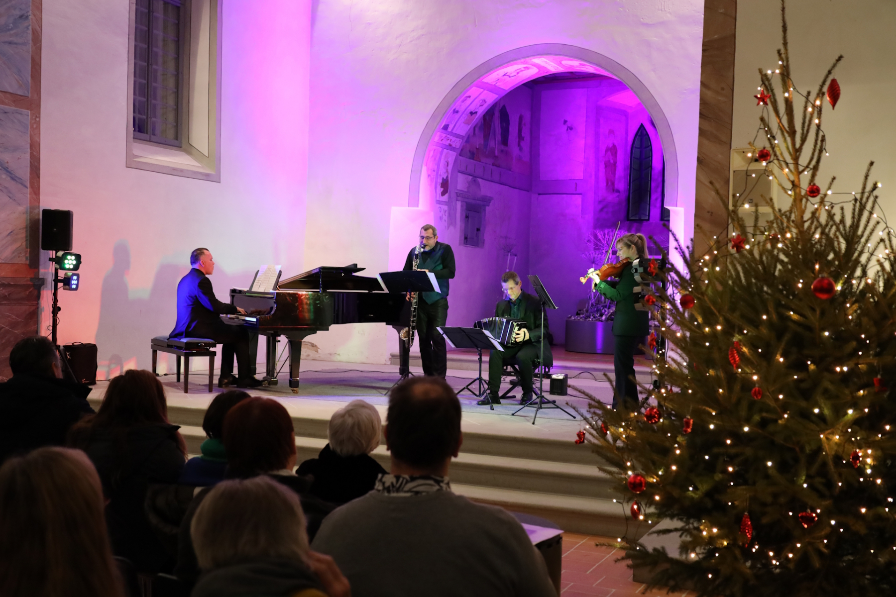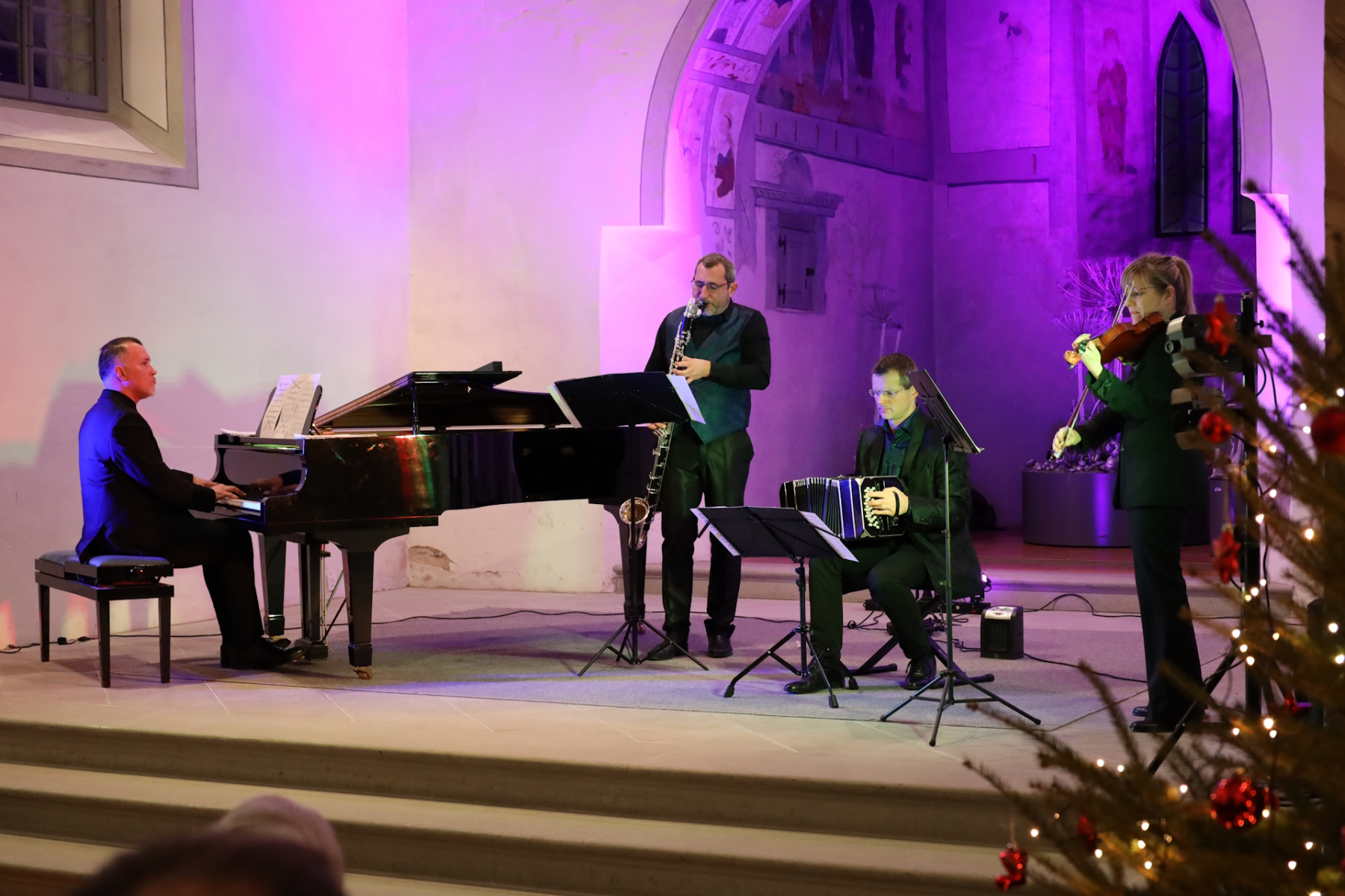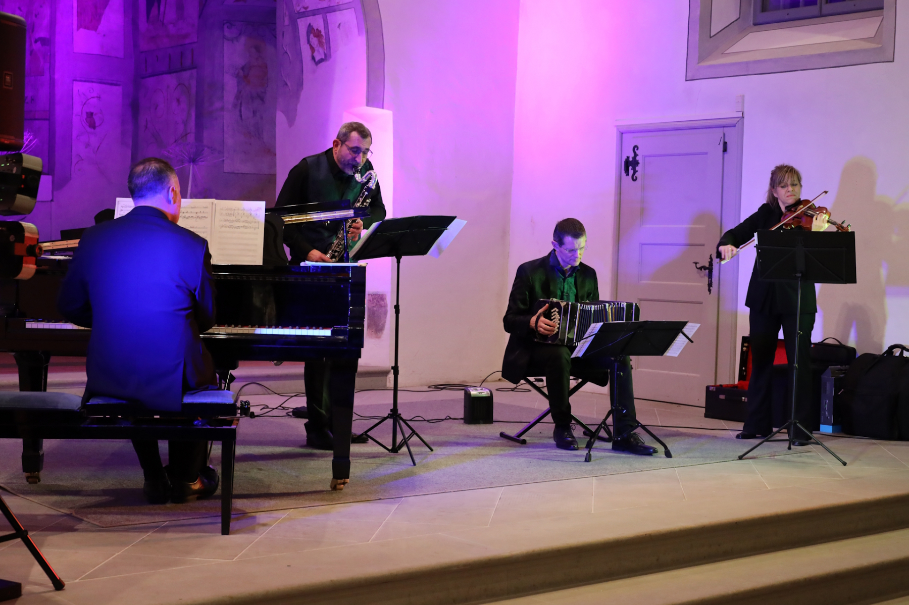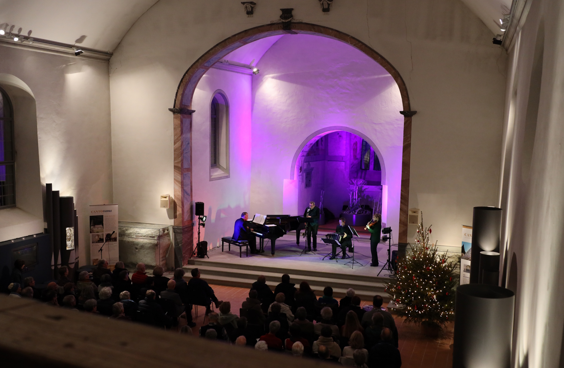Quand on dit Concert du Nouvel An, on pense Vienne, valse, polka ou Strauss. Le programme du Cantorama annonçait pour le 30 décembre 2025 l’Ensemble Cuarteto Tango Indigo. Cela supposait donc un voyage musical en Argentine. Pour un concert du Nouvel An, cela pouvait paraître bizarre et même inquiétant. Et pourtant quelle belle soirée ! Le public a répondu présent et a été enthousiasmé par une ambiance différente, mais chaleureuse et festive. La virtuosité du pianiste compositeur Luis Semeniuk, la discrétion et la musicalité de la violoniste Marie-Jeanne Sunier ont d’emblée conquis les auditeurs. Mais sans le bandonéon remarquable de Jérémy Vannereau, également compositeur, il aurait manqué quelque chose au tango.