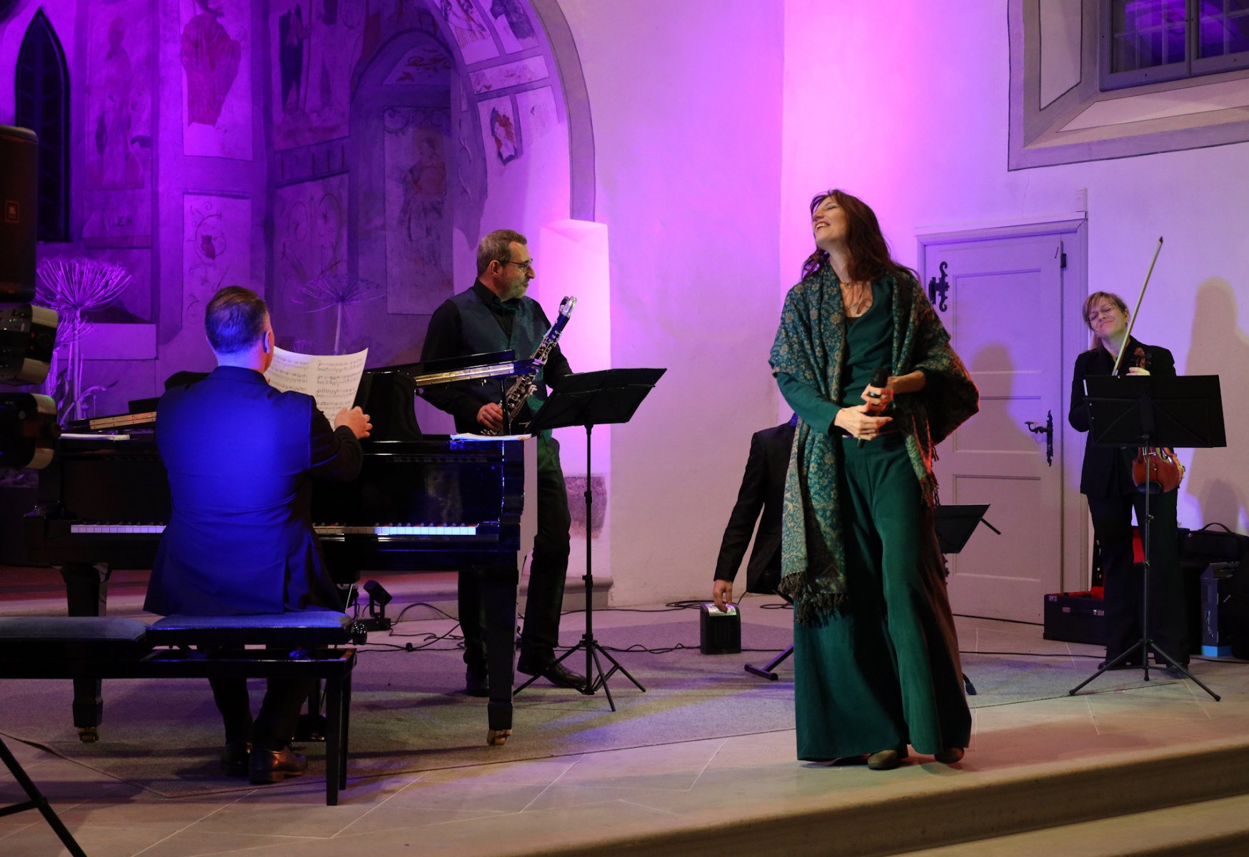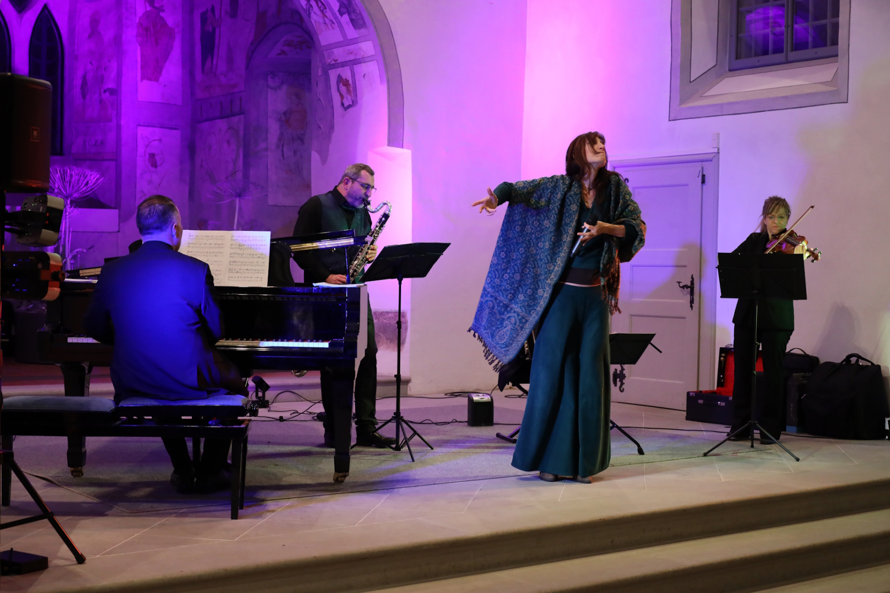 Beim Konzert im Cantorama Jaun trat Dayana Pfammatter Gurten als Solistin, im Duett mit Maritta Lichtensteiger auf. Begleitet wurden sie von der Kontrabassistin Madlaina Küng und am Schwyzerörgeli von Marco Gurten. Die beiden Instrumentalisten sind eine Teil-Besetzung aus dem «Master Rezital» Alpuluft, welches Dayana Pfammatter für ihr Masterdiplom komponiert hat.