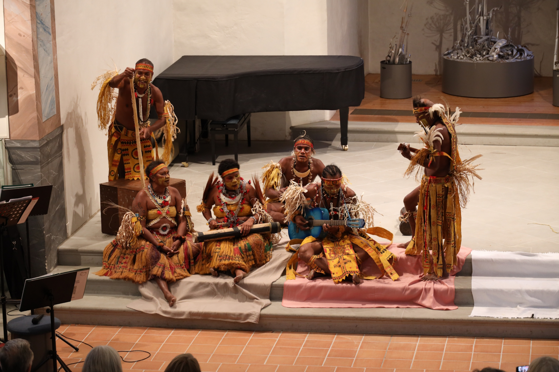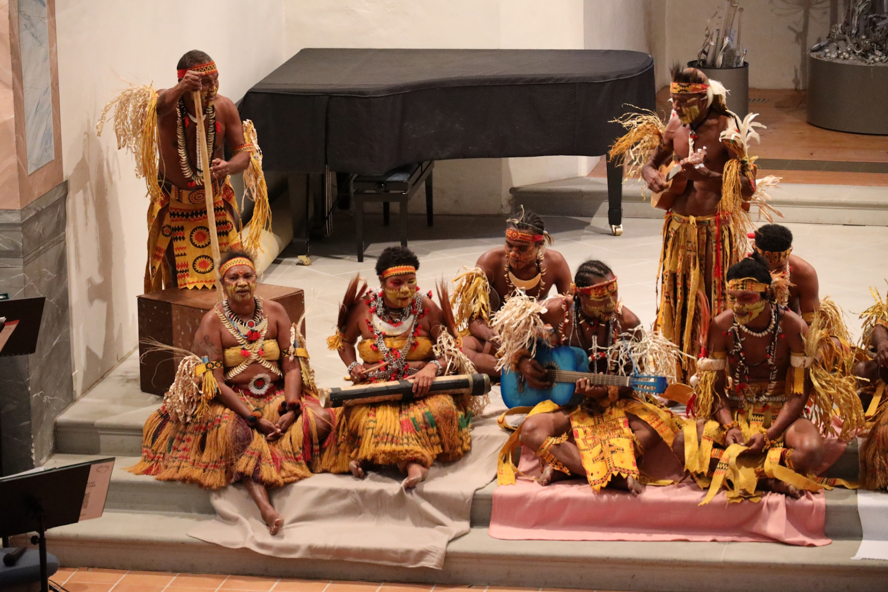 D’abord, l’Opaina Cultural Group, qui vient de Papouasie, a interprété quelques chants traditionnels, accompagnés de deux guitares, d’une « contrebasse » avec une caisse de résonnance qui porte bien son nom et de quelques percussions (kundu).
