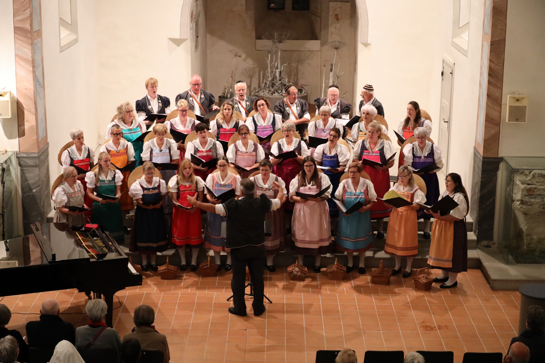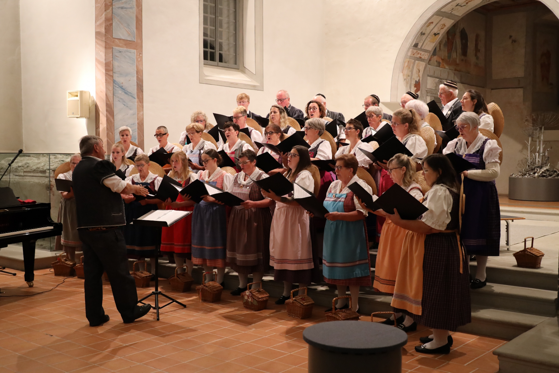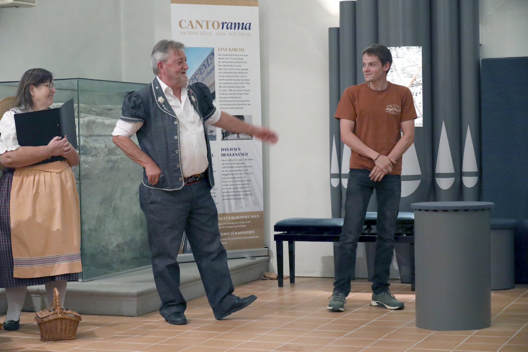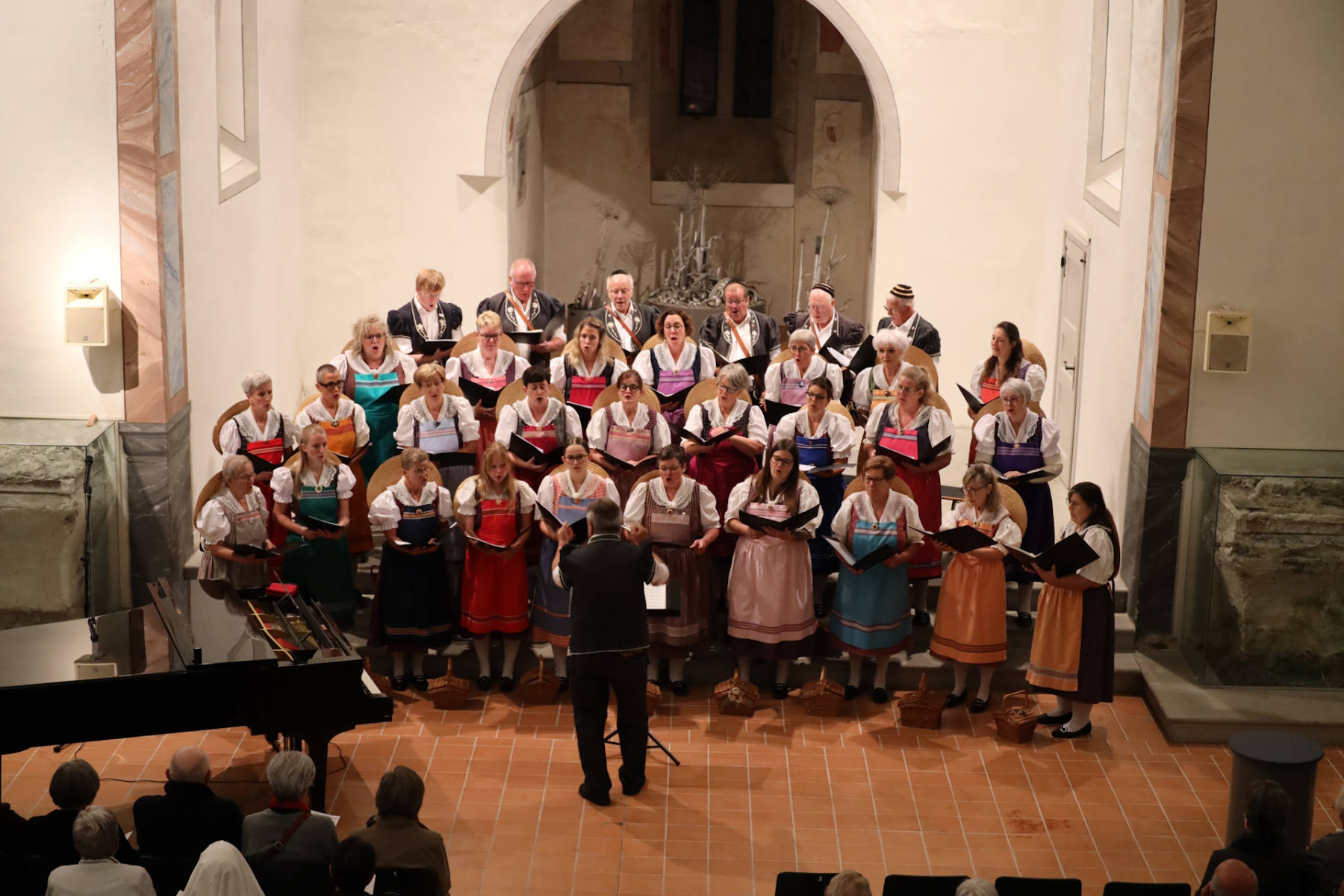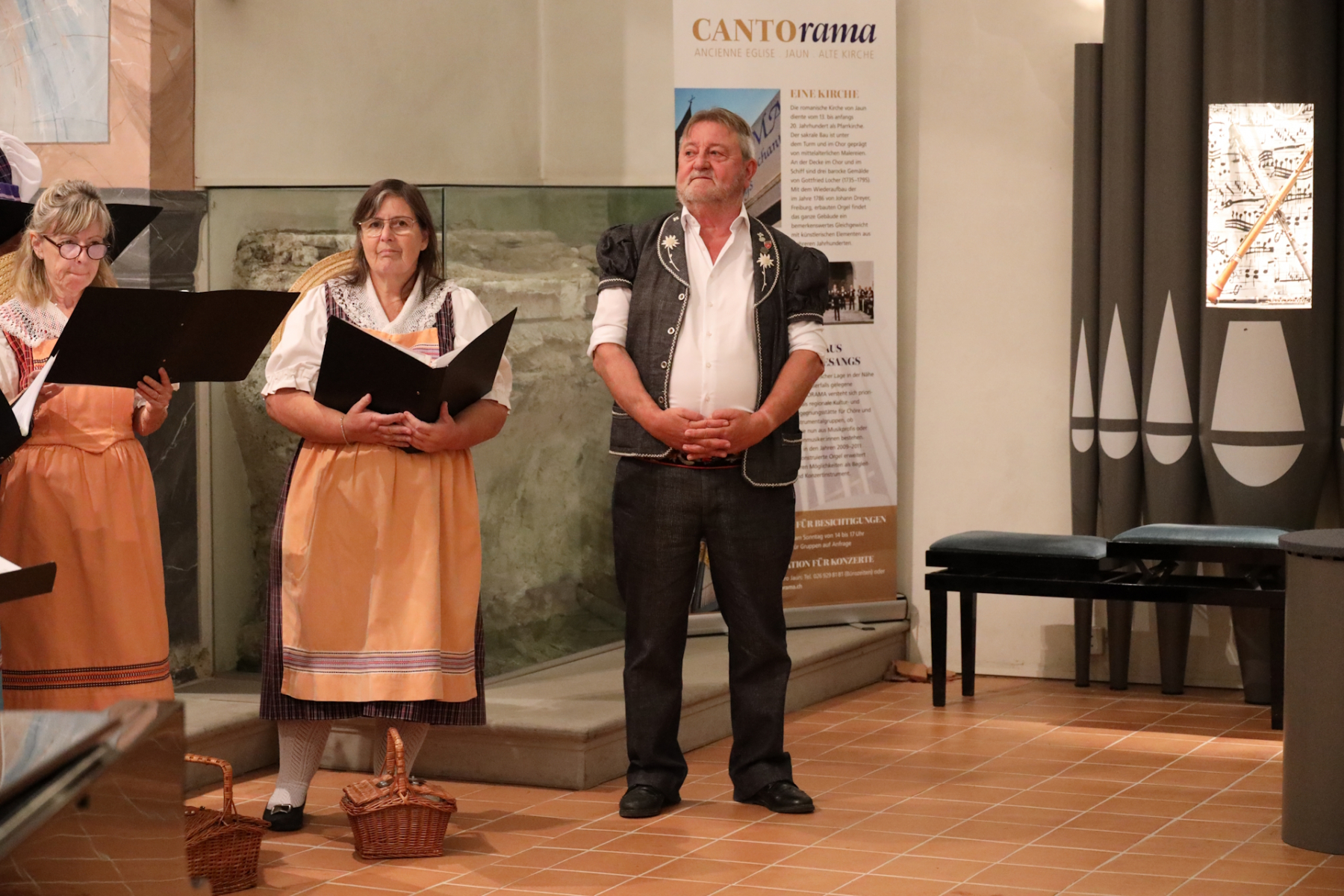 Un concert du bilinguisme rapproche deux langues, mais aussi deux cultures ou deux genres de musique. Après une première partie religieuse du Gemischter Chor de Rechthalten et Lè Riondênè de Broc nous ont charmés avec des mélodies plus populaires. En effet, ce chœur bien étoffé, nous a interprété quelques chansons françaises harmonisées et des mélodies plus régionales. Il faut relever Lè j’aloniè (Les noisettes) de Joseph Bovet ou Images de Jean Mamie avec la présidente Véronique Aeby comme soliste. La délicate et ravissante mélodie La sera sper il lag, en romanche, a apporté une note un peu plus mélancolique. Ce concert a été aussi l’occasion pour les membres du chœur de prendre congé de Jean-Daniel Scyboz, leur directeur depuis 23 ans ! L’occasion pour lui d’interpréter la partie de soliste de Les Vieux de Michel Ducarroz.